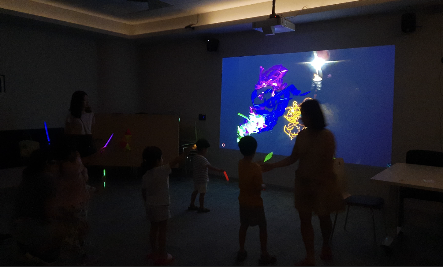 In this interactive installation, viewers become artists as they 'paint' on a shared canvas with their light devices. A sensor that captures light sources translate viewers' movements into lasting light streaks on a projected screen, resulting in an ephemeral co-created light painting that can exist only because of the viewers.